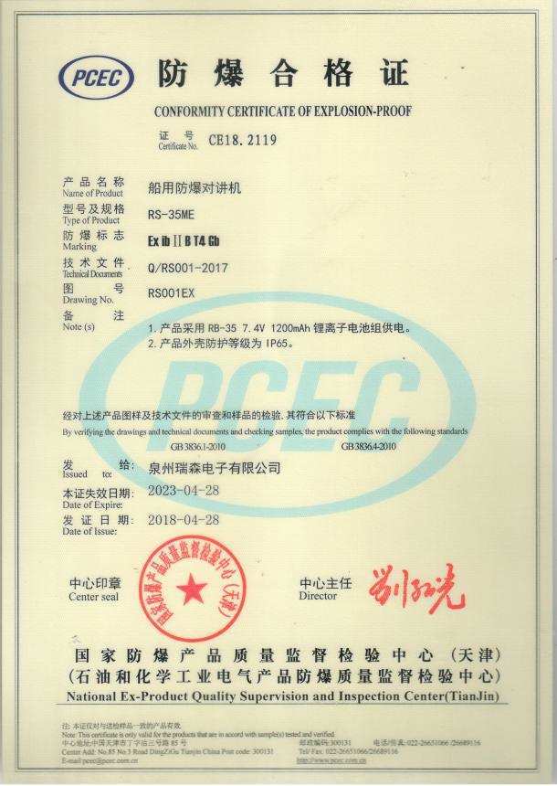 RS-35ME防爆合格證