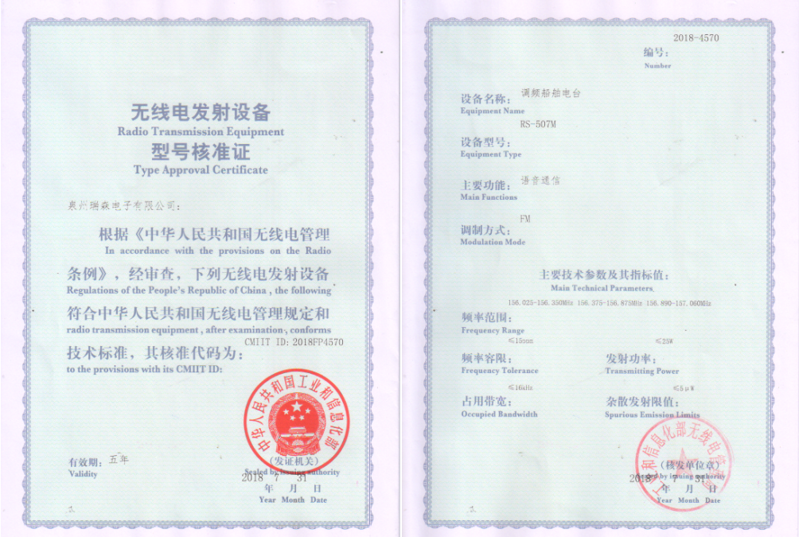 RS-507M型號核準證書